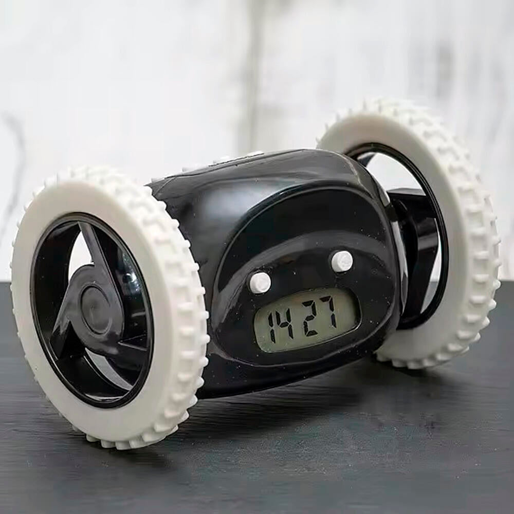 Relógio despertador fugitivo com rodas.