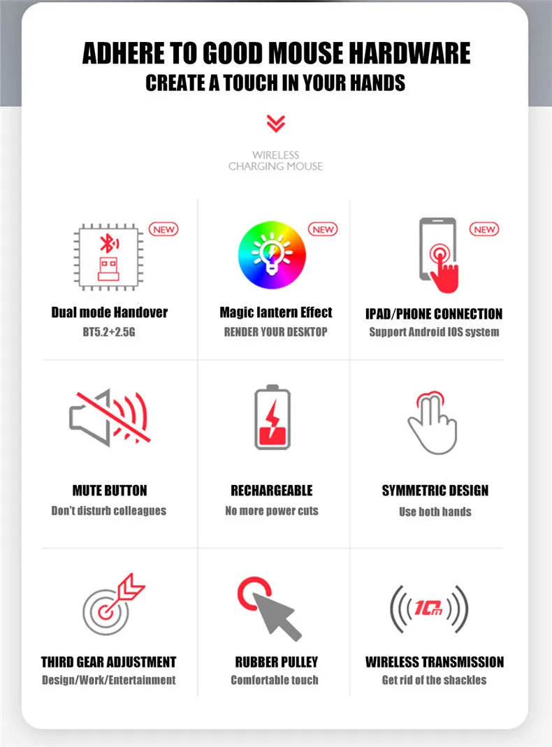 Wireless Mouse RGB Rechargeable Mice Wireless Computer Mause LED Backlit Ergonomic Gaming Mouse For Laptop PC